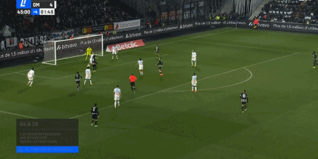 第33分鐘,埃莫森直塞,哈米德-特拉奧雷破門再下一城,馬賽3-0昂熱