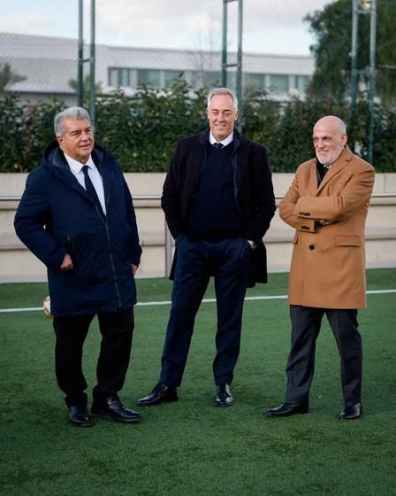 巴塞羅那足球俱樂部主席拉波爾塔與西甲聯(lián)盟主席特巴斯,共同歡迎由中國(guó)國(guó)務(wù)委員諶貽琴率領(lǐng)的中國(guó)代表團(tuán)訪問巴薩拉瑪西亞青訓(xùn)營(yíng)。