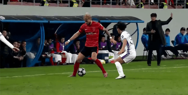 17’廣島任意球送到門(mén)前,中野就斗頭球攻門(mén),被蹇韜出擊沒(méi)收
